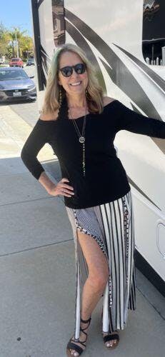 This is a really cute top that can be worn with skirt. I love that about this top. It is fit as expected